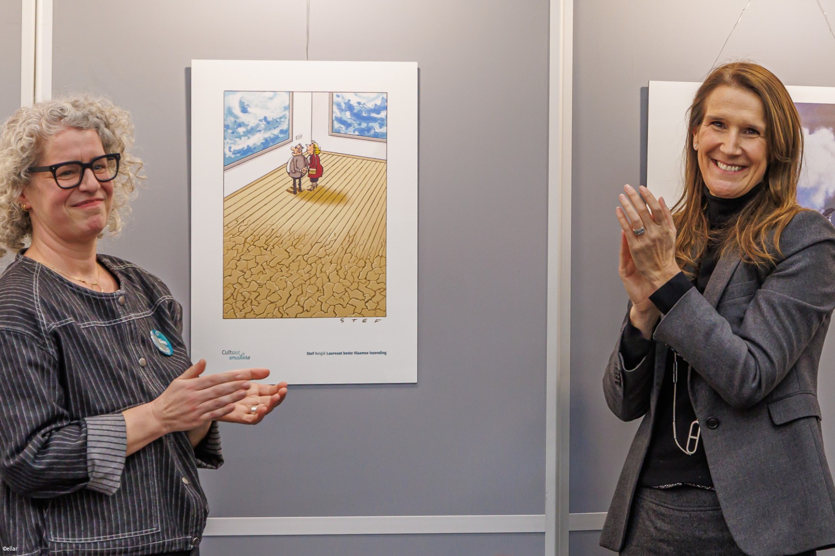 Na de officiële prijsuitreiking werd meteen ook de cartoontentoonstelling geopend. De werken van de 4 laureaten zijn er te bewonderen samen met nog 26 andere cartoons: